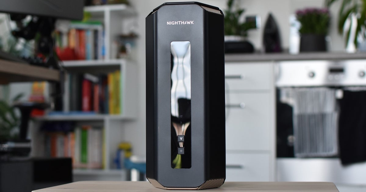 Mewakili semua router Wi-Fi 7 dalam pengujian saya adalah Netgear Nighthawk RS700, monolit menjulang tinggi yang pernah Anda lihat di gambar. Memang tidak murah – milik Anda hanya dengan £700 / $700 – tetapi ini adalah contoh formulir kelas atas yang sedang dijual saat ini, jadi tidak akan ada gunanya. Jika ada, saya kurang memanfaatkannya dengan menghubungkannya ke koneksi 1Gbit/s saya; kecepatannya bisa mencapai 10Gbit/dtk, meskipun paket cepat seperti itu belum tersedia untuk orang awam saat ini.